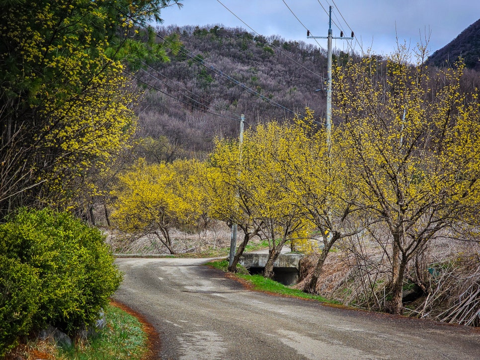 특히 자연 그대로의 농촌 풍경과 함께 산수유나무가 어우러진 모습은 도시에서는 쉽게 볼 수 없는 풍경을 만들어 줍니다.