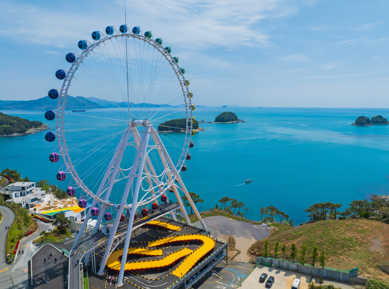 여수 바다 옆을 지나가는 짚코스터는 바람을 가르며 미끄러지는 듯한 짜릿한 질주감을 선사해요. 특히 곡선 형태의 레일을 따라 달리는 체험이라 일반 집라인과는 다른 재미가 있어요!