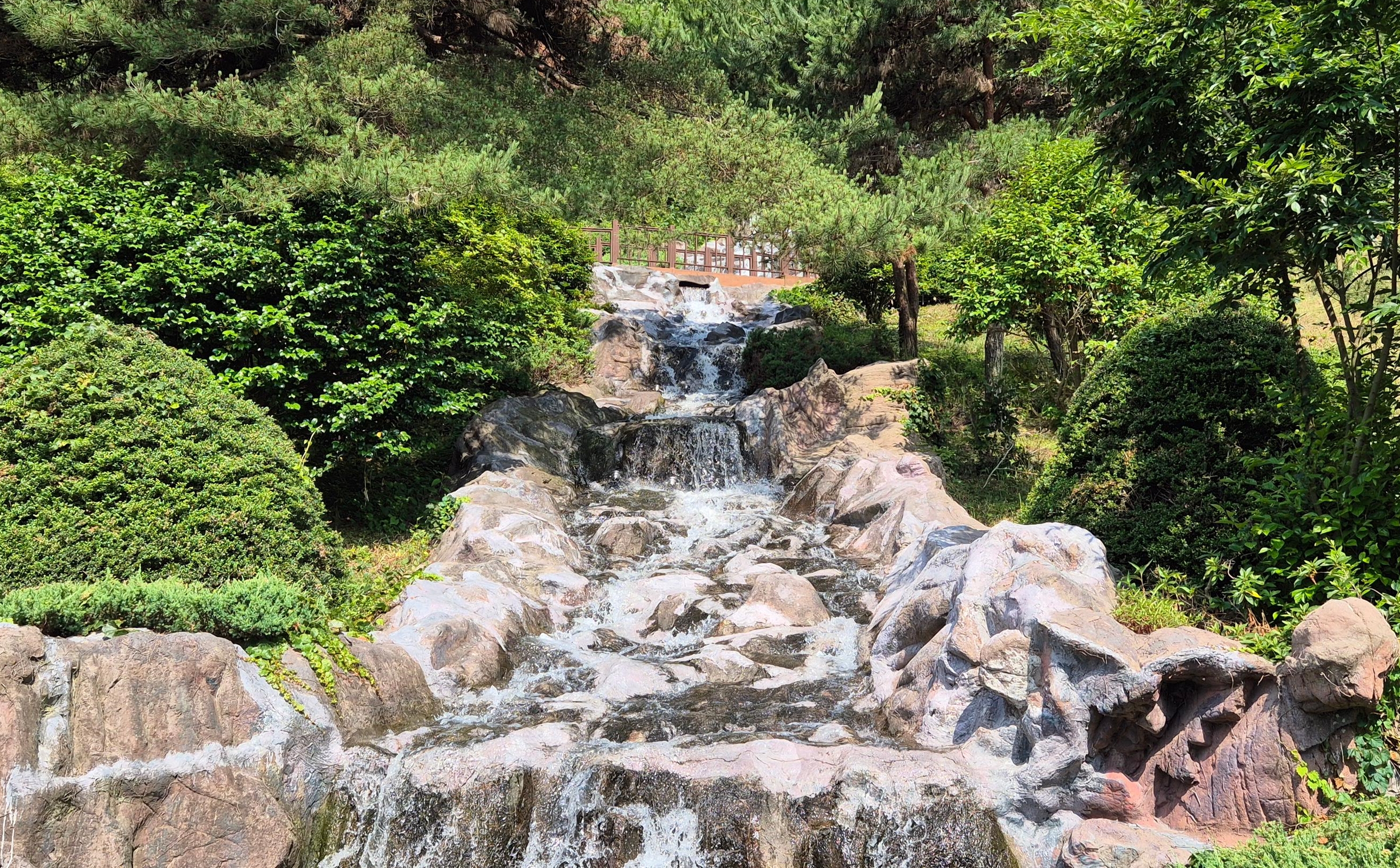 또한 계단식 인공폭포와 조명 시설이 잘 조성되어 있어