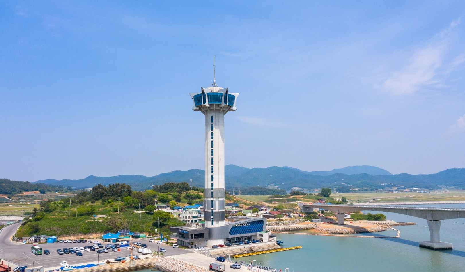 칠산타워는 전남 영광군 염산면에 위치한 전라남도에서 가장 높은 해양 전망대(111m)입니다. 이 높이는 영광군 11개 읍면이 화합한다는 의미도 담고 있어요.