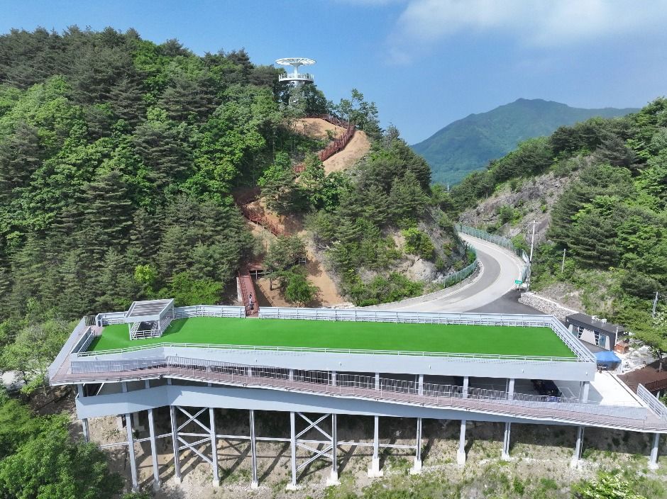 높은 산자락 위에 위치한 만큼 전망대에 올라서면 겹겹이 이어지는 산 능선과 숲 풍경이 시원하게 펼쳐집니다. 맑은 날에는 멀리까지 이어지는 산세가 한눈에 들어와 자연의 웅장함을 그대로 느낄 수 있습니다.