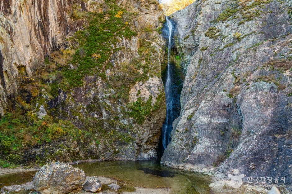 폭포 아래로 떨어지는 옥수는 계곡을 따라 흐르다 산중 저수지에서 잠시 머물고, 이어지는 작은 오솔길은 마치 자연이 준비한 비밀 통로처럼 아늑함을 줘요.