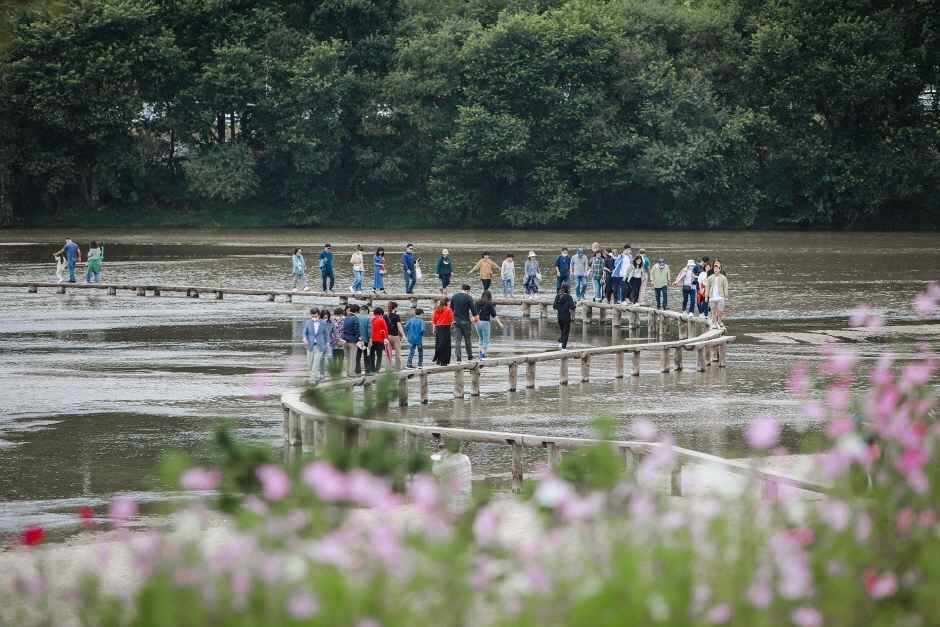 현재의 외나무다리는 옛 모습을 그대로 재현한 것으로, 매년 가을 ‘무섬 외나무다리 축제’에서 실제 외나무다리 걷기 체험도 진행돼요. 옛 선비들의 삶을 간접 체험해볼 수 있는 전통문화재이자, 국내에서도 드물게 원형이 보존된 귀중한 유산이랍니다.