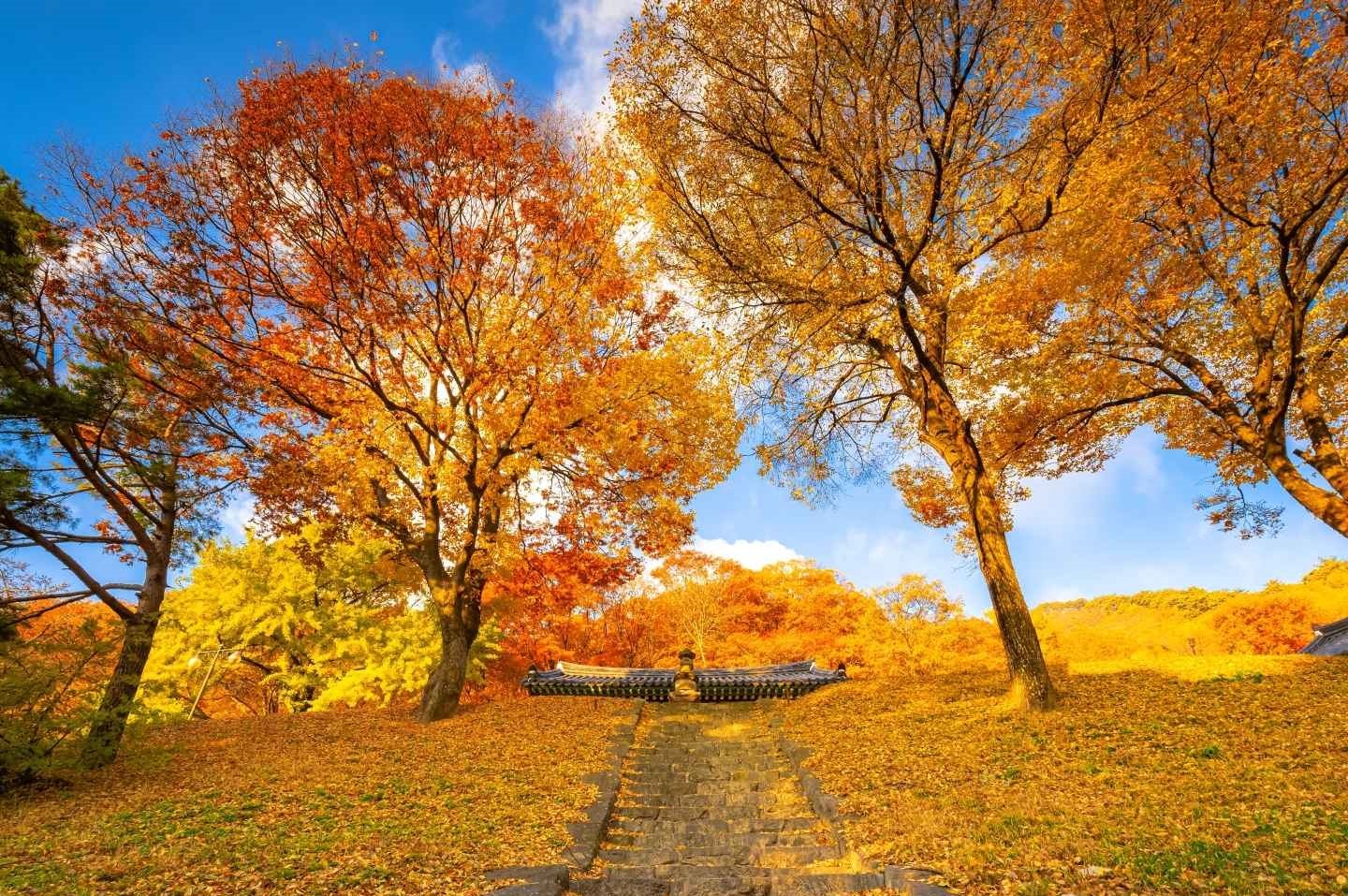 단풍은 10월 말에서 11월 초가 절정이며, 이른 아침 안개와 함께 보는 단풍 풍경은 정말 환상적이에요 🌫🍁