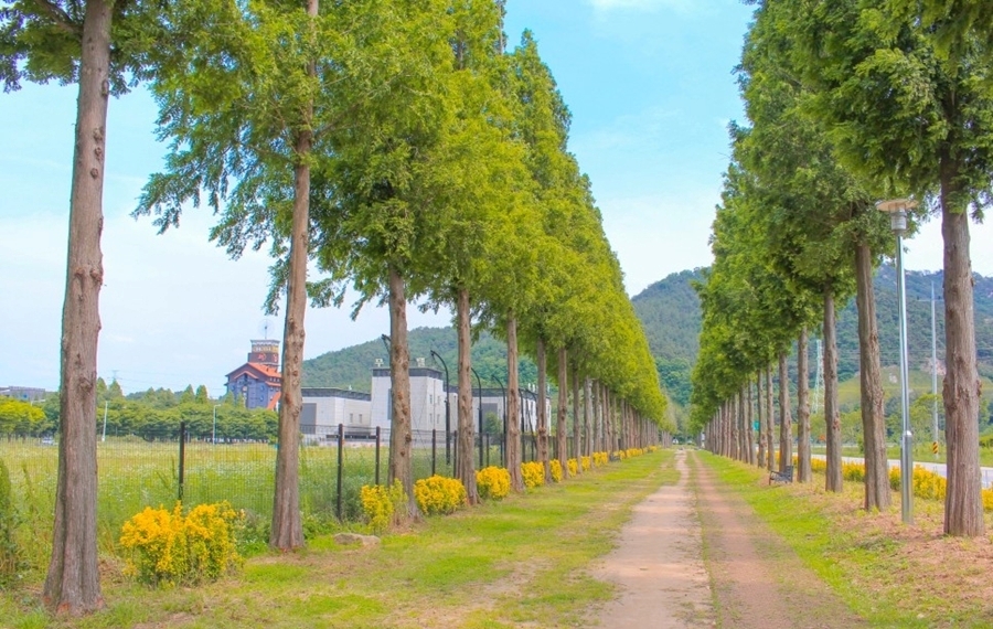 덕산 메타세쿼이아길은 충남 예산에 위치한 작지만 감성 가득한 산책길이에요. 전체 길이는 450m로 짧지만, 그 안에 담긴 정취는 여느 긴 숲길 못지않답니다. 곧게 뻗은 메타세쿼이아 나무들 사이를 걷다 보면, 마치 영화 속 한 장면처럼 조용하고 평화로운 시간이 펼쳐져요. 특히 다른 지역보다 나무 간격이 넓어 심리적인 여유와 안정감까지 더해준답니다. 중간중간 놓여 있는 나무 의자에 앉아 바람에 살랑이는 잎소리를 들으며 논두렁을 바라보면, 마음이 스르르 풀리는 기분이에요.