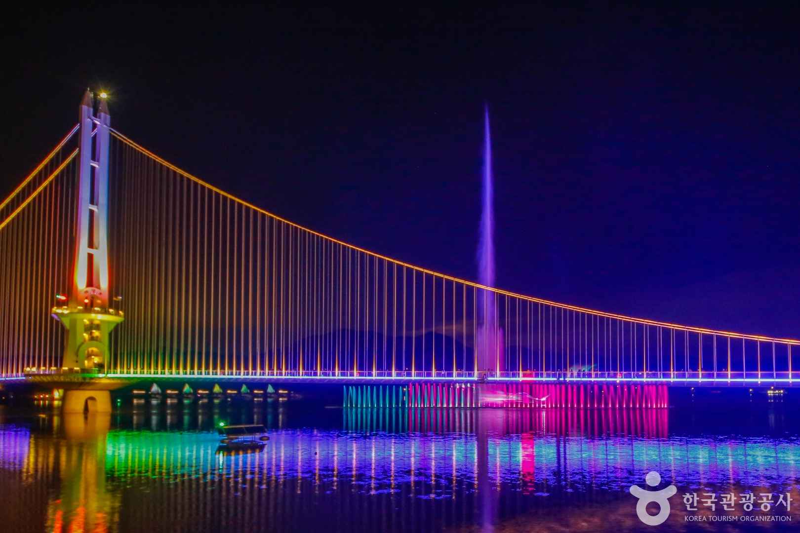 예산 예당호 출렁다리 음악분수 힐링 여행 | LED 빛과 음악이 어우러진 밤의 낭만