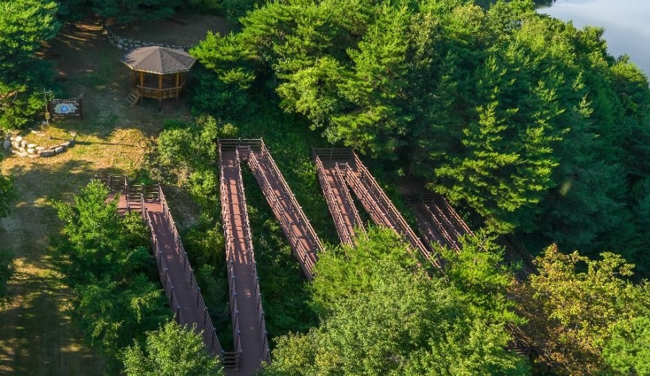 전망대로 가는 길은 전 구간 데크로 조성된 산책로라 누구나 쉽게 오를 수 있고, 중간중간에 앉아 쉴 수 있는 휴게공간도 마련돼 있어 천천히 여유롭게 자연을 감상하기에도 정말 좋아요.