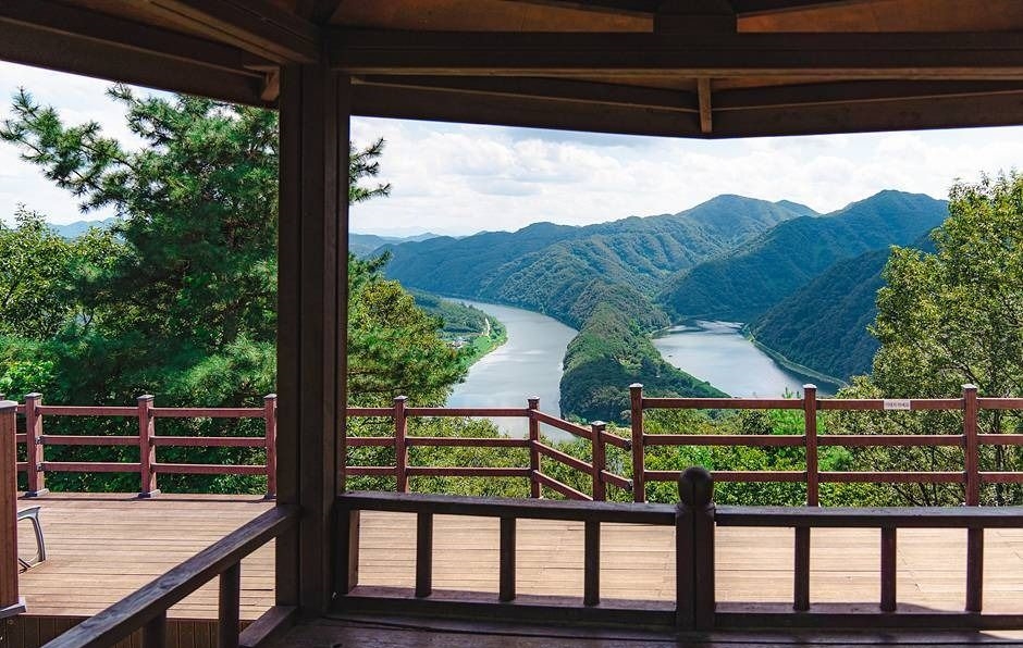 둔주봉 전망대는 해발 275m에 위치해 있어요. 높은 고도가 아님에도 불구하고, 금강이 만들어낸 한반도 형상의 전경을 온전히 내려다볼 수 있는 최고의 명당입니다.