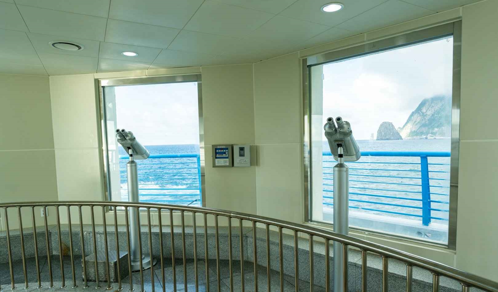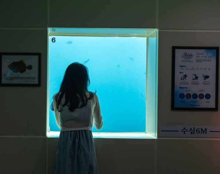 전망대 안으로 들어가면, 계단과 엘리베이터를 이용해 수중 공간까지 내려갈 수 있어요. 바닷속 깊이 약 6m 지점에는 360도 수중 전망창이 설치되어 있어 자연 상태의 물고기들이 유영하는 모습을 바로 눈앞에서 관찰할 수 있답니다.