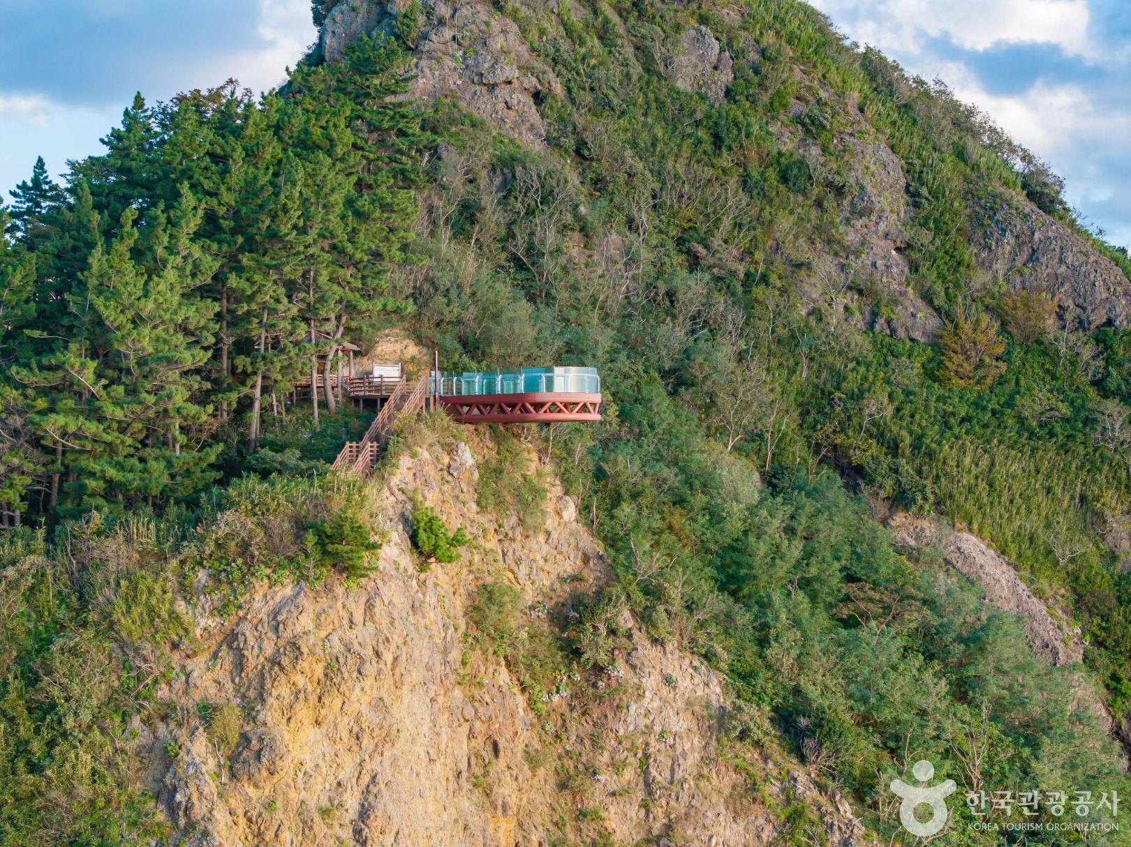 전망대 아래 바다 방향 절벽 쪽에 위치해 있어요. 전망대에서 내려다보면 바로 눈에 들어오는 위치랍니다.