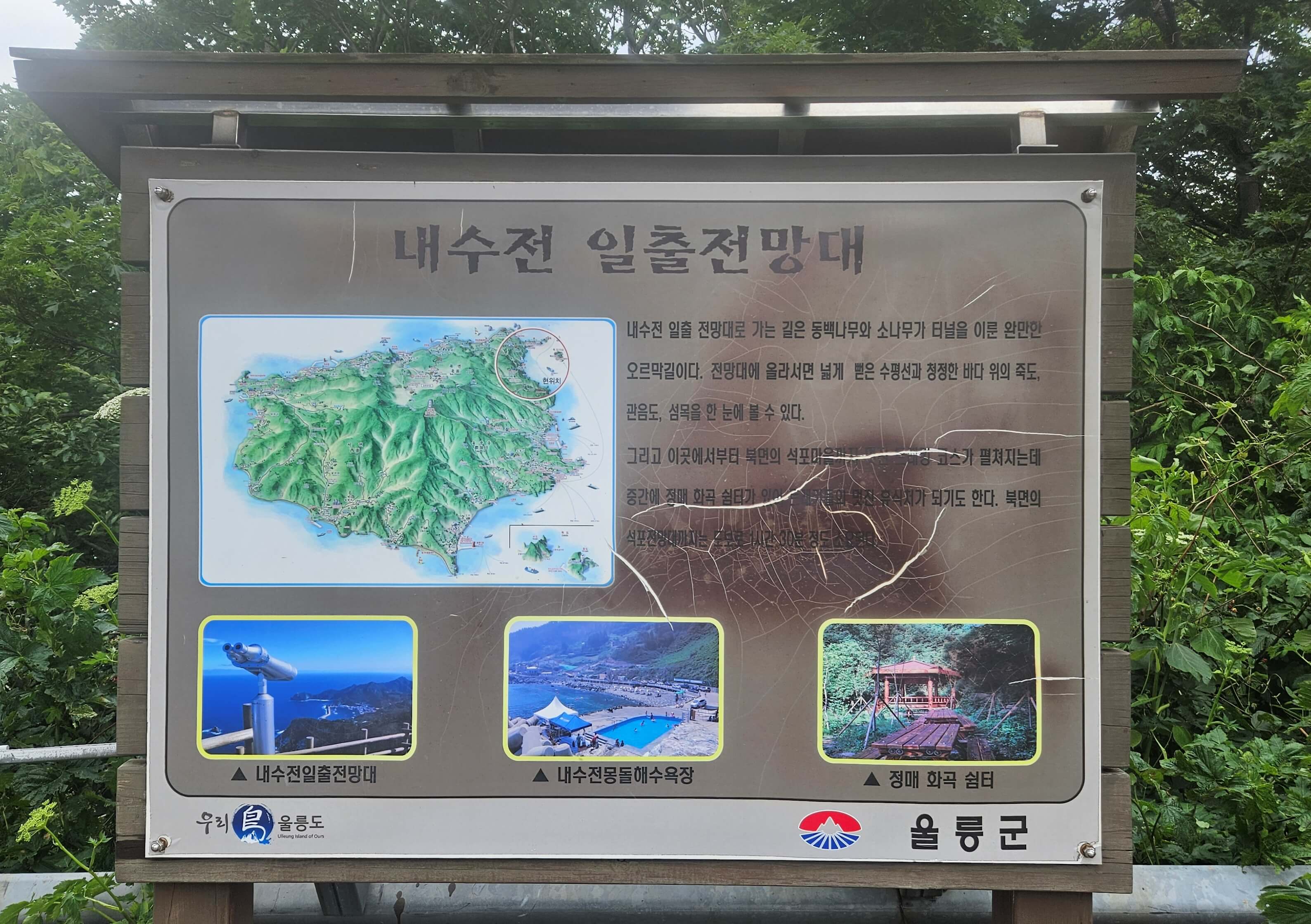 내수전 일출전망대의 입구는 저동항에서 도보로 약 20분 거리에 위치하고 있어요. 입구부터 전망대까지는 폭이 좁고 가파른 오르막길이 이어지며, 편안한 신발과 물 준비는 필수랍니다. 오르막길을 따라 올라가며 울릉도의 숲을 감상할 수 있는 생태 탐방로가 함께 이어져 있어서 단순한 이동이 아닌 트레킹을 즐기며 오를 수 있는 코스로 많은 사랑을 받고 있습니다. 걷는 동안 들리는 바람 소리와 나무의 향은 도시에서는 느낄 수 없는 자연의 힐링을 전해줘요.