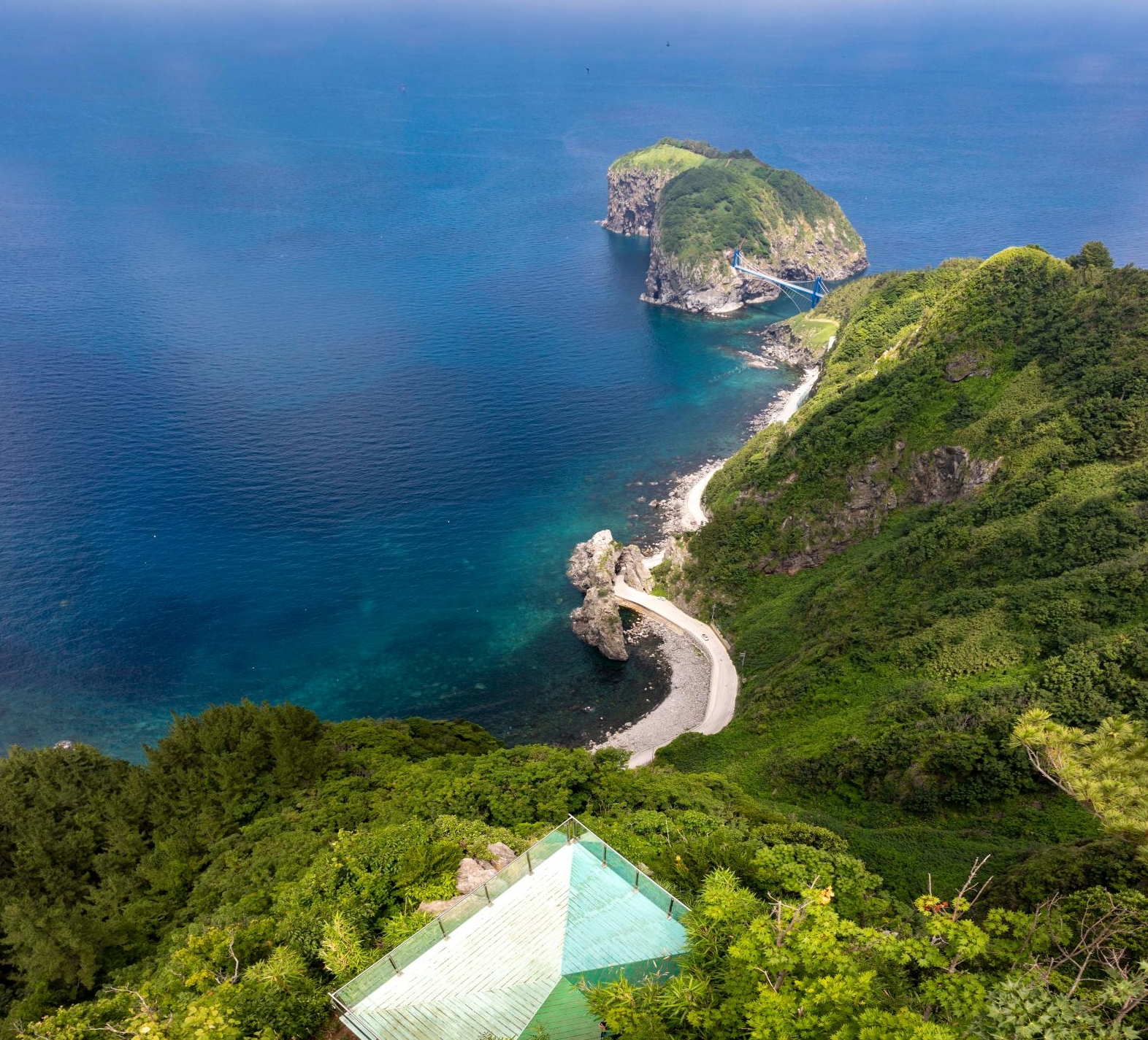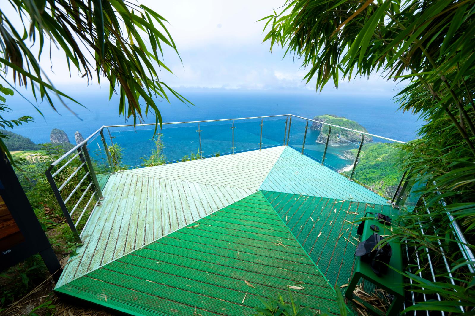 정들포 전망대에 도착하면 가장 먼저 마주하는 건 “나만 알고 싶은 울릉도의 풍경”이에요. 관음도와 죽도가 눈앞에 펼쳐지고, 울릉도의 푸른 절벽과 해안선이 파노라마처럼 시야를 채웁니다.