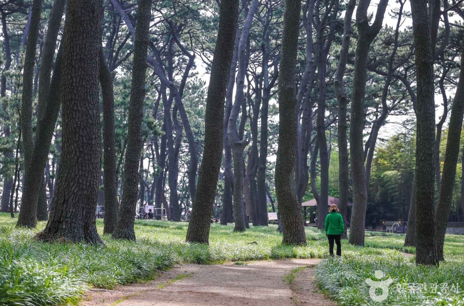 물론이죠! 송림 산책로는 단단한 흙길로 무장애 접근이 가능</b하고, 휠체어와 유모차도 대여할 수 있어요.