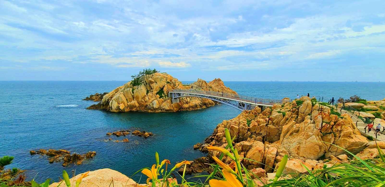 산책로 끝, 송림을 벗어나면 시야가 확 트이는 해안 절벽이 펼쳐지며 기묘하고 거대한 바위 무리가 시선을 사로잡습니다. 마치 선사시대 공룡 화석처럼 푸른 바다 위에 바짝 엎드려 있는 듯한 모습인데요, 그중 가장 압도적인 바위가 바로 대왕암입니다. "하늘로 솟구치는 용의 형상"을 닮았다는 이 대왕암은 신라 문무대왕의 왕비가 죽은 후 나라를 지키는 호국룡이 되어 이 바다에 잠겼다는 전설이 전해져요. 그래서 이곳은 ‘대왕암’ 혹은 ‘용추암’, ‘댕바위’ 등으로 불리며 신비로운 기운이 깃든 장소로 많은 이들의 사랑을 받고 있답니다.