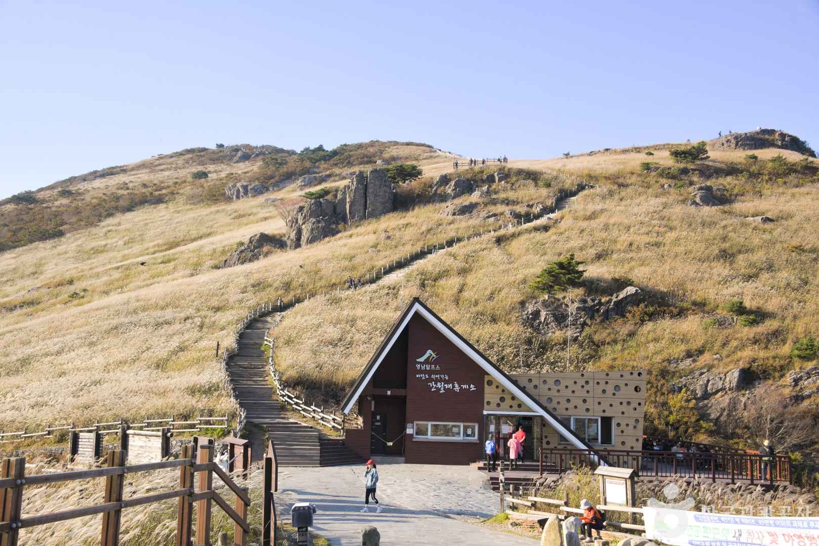 등산이나 산책 후엔 간월재 휴게소에서 잠시 쉬어가는 것도 좋겠죠? 이곳은 간단한 간식과 따뜻한 음료를 즐기며, 탁 트인 풍경을 감상할 수 있는 힐링 포인트랍니다. 특히 통유리 창 너머로 펼쳐지는 억새밭 뷰는 정말 사진으로 다 담기 어려운 아름다움을 선사해요.