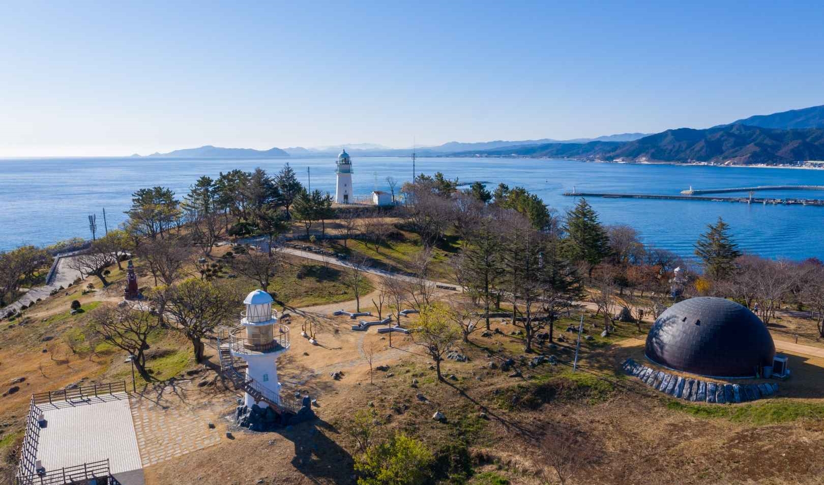 바로 경북 울진 후포항 근처에 있는 등기산공원과 스카이워크가 그 주인공인데요. 여기는 단순한 바다 전망을 넘어서 세계의 유명한 등대들을 한자리에서 만나볼 수 있는 테마공원과 135m 길이의 유리 바닥을 걷는 스릴이 공존하는 이색 여행지랍니다!