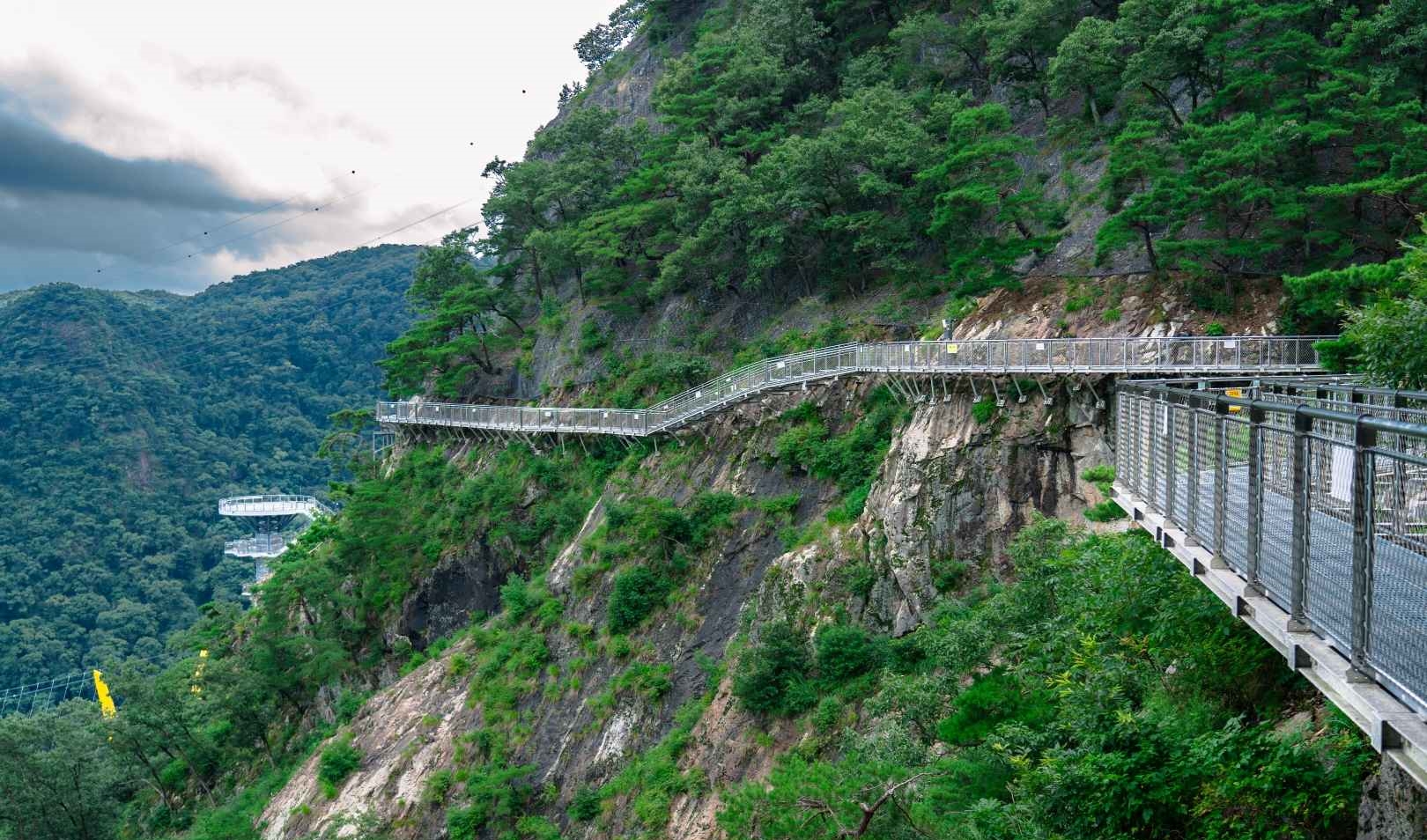 절벽을 따라 이어지는 잔도, 협곡 위를 가로지르는 출렁다리, 그리고 정상에서 내려다보는 압도적인 전망까지!