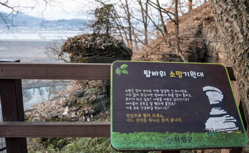 탑바위는 단순한 바위가 아니라 자연 조형물 + 역사 문화 유적으로, 감탄과 여운을 동시에 느낄 수 있는 의령의 대표 명소입니다!
