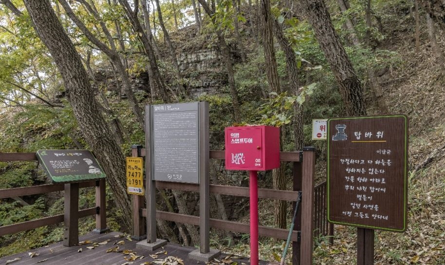 - 바위 전망대 포인트 - 바위 주변 데크길에서 탑바위를 정면으로 감상할 수 있는 포토존이 있어요. 셀카도 추천!