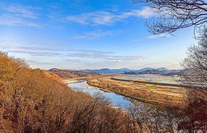 - 들판과 어우러진 원경 - 강 건너 펼쳐진 드넓은 들판과의 조화가 평화롭고 감성적인 분위기를 선사해요.