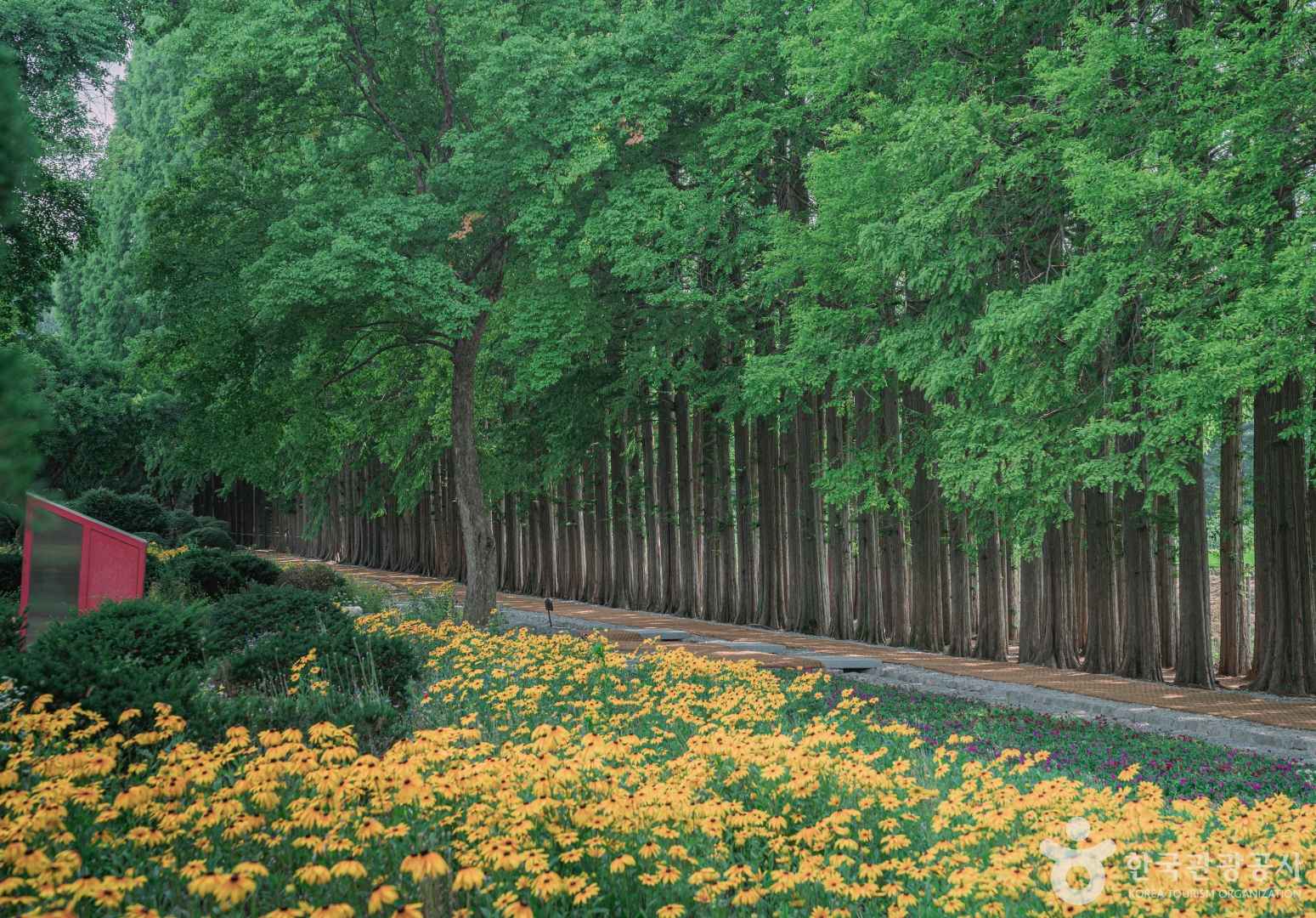 봄에는 수선화와 튤립이 알록달록 피어나고, 여름에는 푸른 메타세쿼이아 숲이 짙은 그늘과 시원한 공기를 선물해줘요.