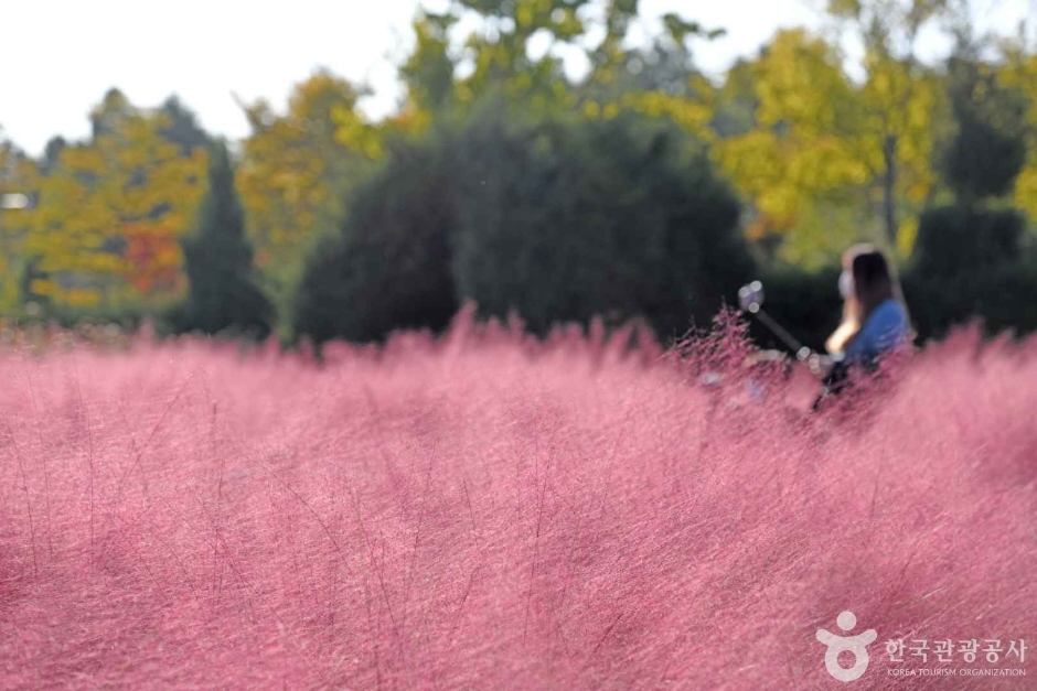 가을이 되면 드림파크 야생화단지 전체가 핑크빛으로 물들어요. 9월부터 11월까지 만개하는 핑크뮬리와 코스모스는 사진을 좋아하는 분들에겐 더없이 완벽한 배경이죠. 특히 햇살 아래 은은하게 빛나는 핑크뮬리 밭은 감성 가득한 인생샷 스팟으로 소문나 있어요.