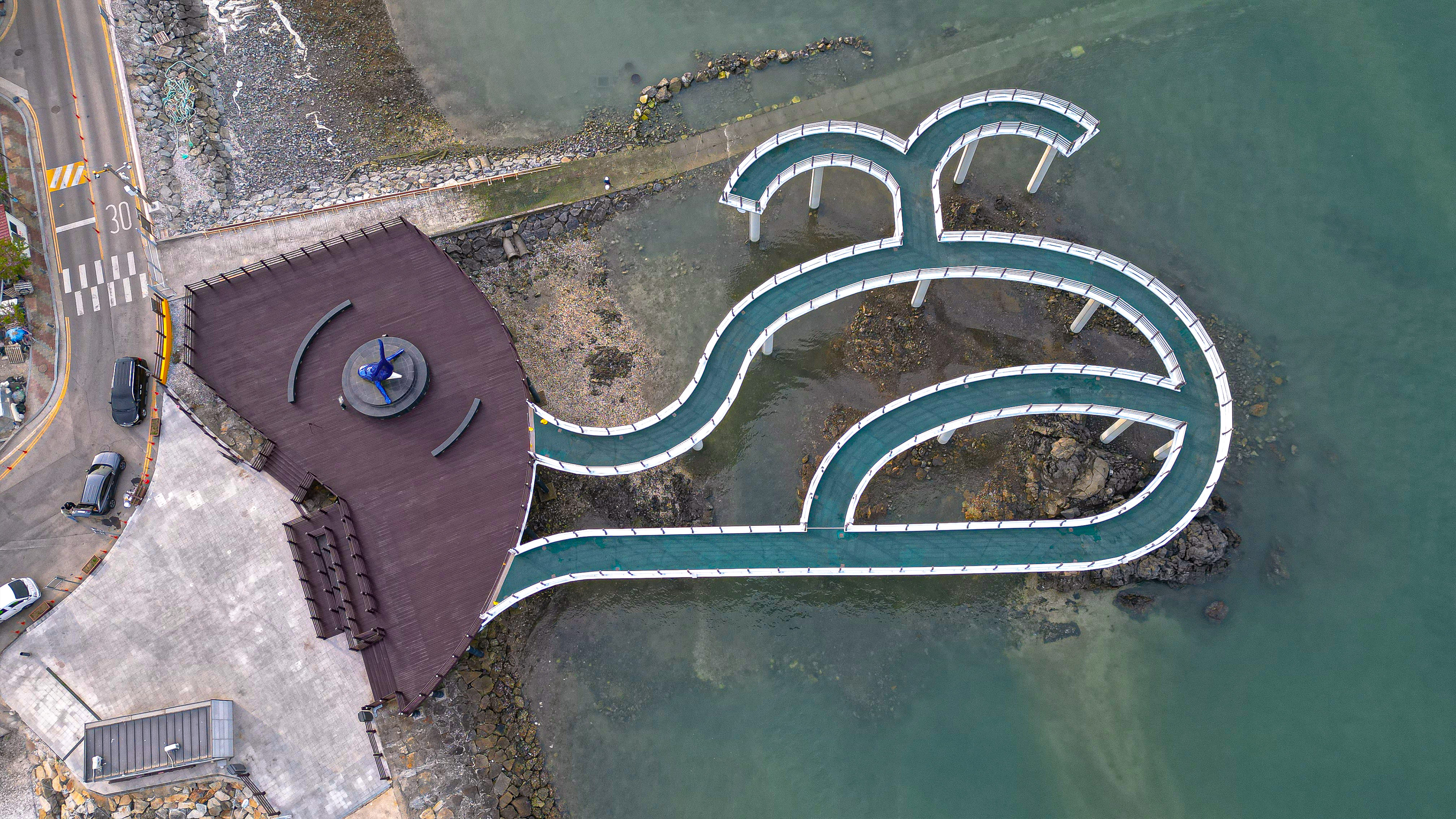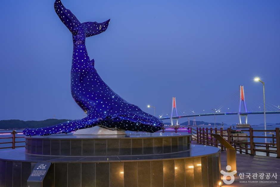이곳의 상징인 ‘하늘고래’ 조형물은 바다와 생명, 꿈을 의미하는 전설 속 존재로, 옹진의 반딧불이 모여 하늘로 날아오르는 고래를 형상화한 작품이에요.