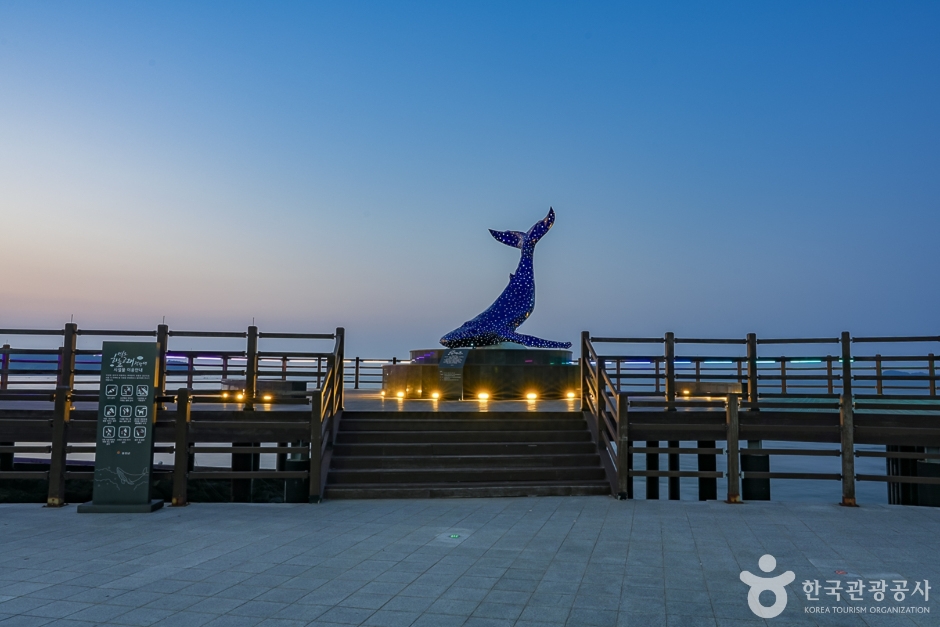 일몰 무렵부터 하늘고래 조형물에 은은한 조명이 켜지기 시작하고, 멀리 영흥대교의 불빛과 함께 어우러지면서 로맨틱한 분위기를 자아내죠.