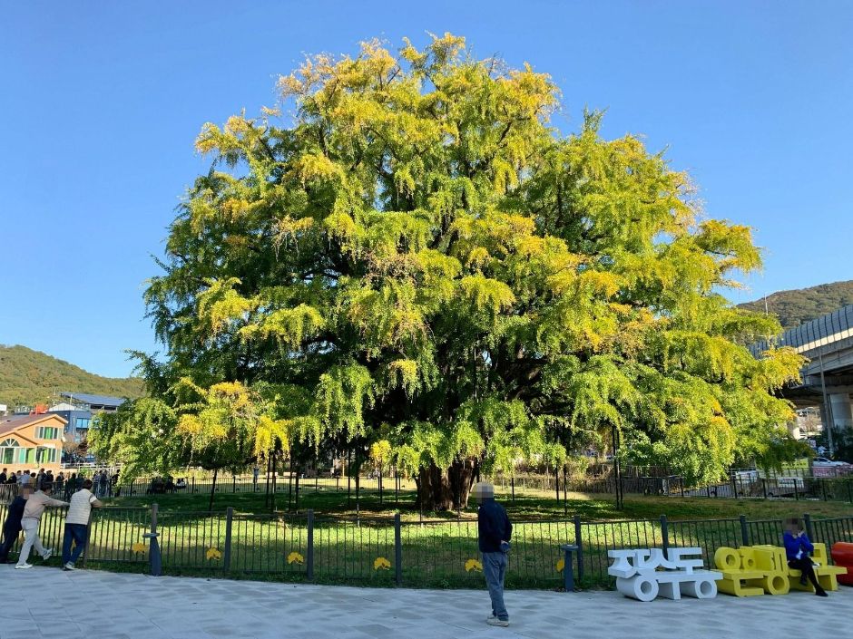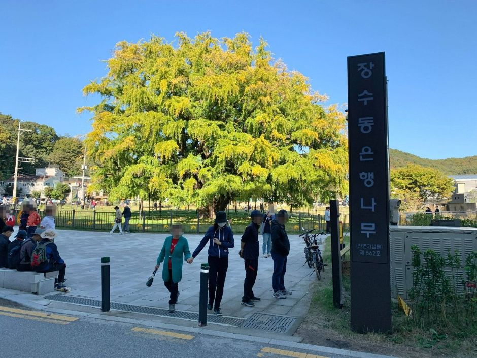 ⚠️ 주의: 장수동 은행나무는 보호수로 지정된 만큼, 가지를 꺾거나 나무에 손을 대는 행위는 삼가주세요.