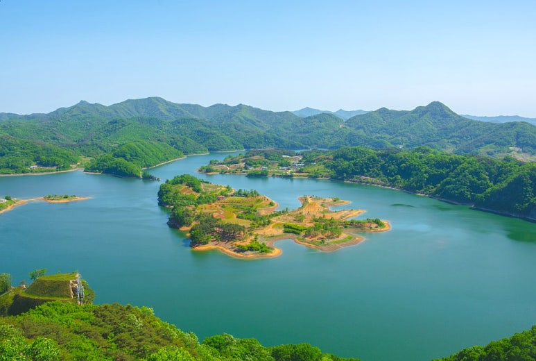 국사봉전망대에 오르면 펼쳐지는 옥정호 전경은 정말 그림 같아요. 옥정호는 섬진강 상류에 있는 인공호수로, 잔잔한 수면 위로 벼락바위, 운암대교, 산 능선이 조화를 이루며 마치 한 폭의 동양화 같은 풍경을 보여주죠.