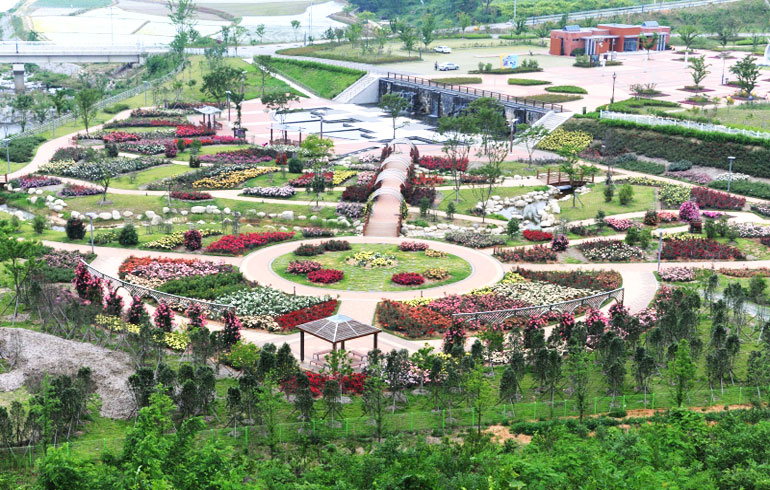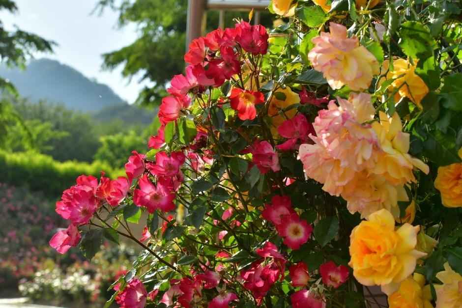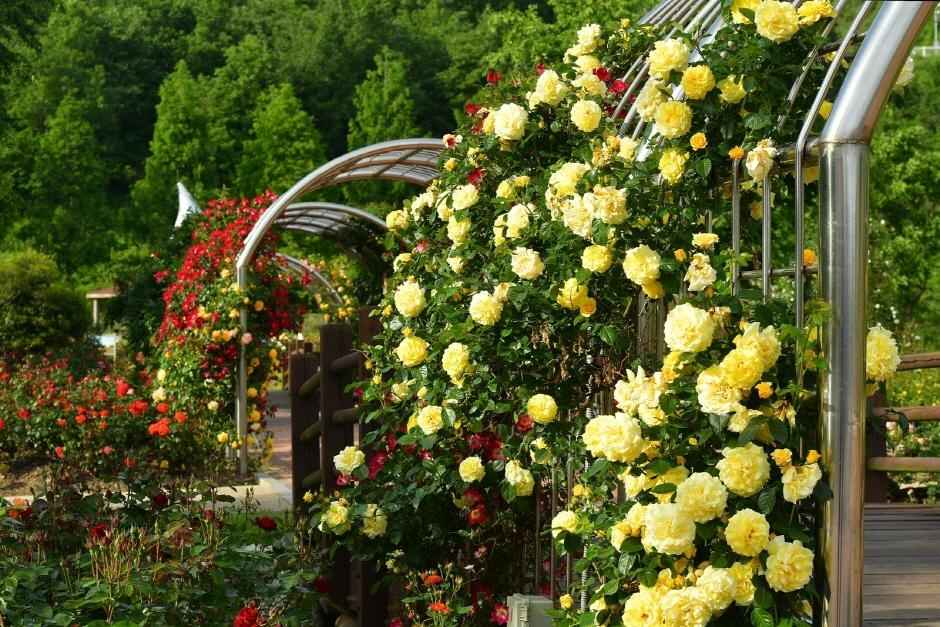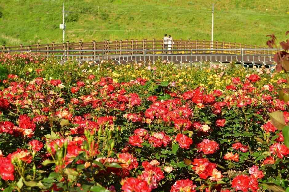이곳은 형형색색 130여 종, 13,780주의 장미가 넓게 펼쳐진 공원 곳곳을 수놓고 있어요. 장미꽃 사이를 걸으며 향기에 취하고, 곳곳에 설치된 벽천폭포와 전망대에서 눈호강도 할 수 있는, 그야말로 자연 속 오감 만족 힐링 스팟이랍니다.