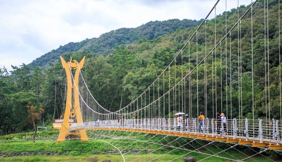 네, 출렁다리는 안전하게 설치되어 있으며, 높은 난이도 없이 누구나 이용 가능합니다. 단, 심한 고소공포증이 있으신 분은 주의가 필요합니다.