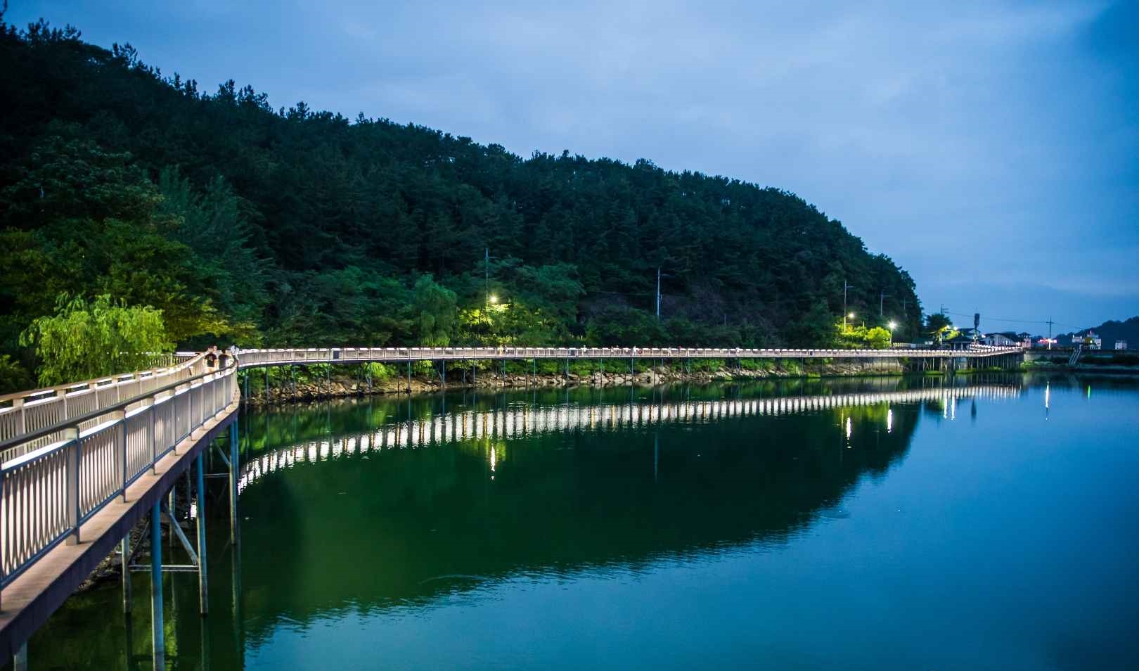 아중호수의 진짜 매력은 밤에 시작된다고 해도 과언이 아닙니다. 수상 산책로를 따라 설치된 조명들이 하나둘 켜지며 호수 주변이 마치 빛으로 그린 그림처럼 변신해요. 물 위에 반사된 조명들과 데크를 따라 걸을 때 마치 야경 속을 걷는 주인공이 된 듯한 기분이 들죠. 이런 낭만적인 분위기 덕분에 커플 데이트 코스나 사진 명소로도 입소문이 자자해요. 조용한 음악과 함께 천천히 걸으면, 그 자체가 하나의 감성 힐링 여행이 되어줄 거예요.
