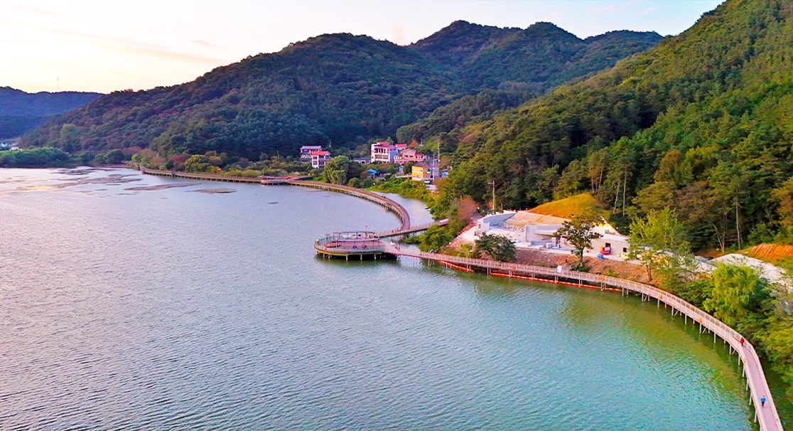 2️⃣ 산책로 커브 구간 – 굴곡 있는 호수 라인이 사진에 자연스레 담겨요.