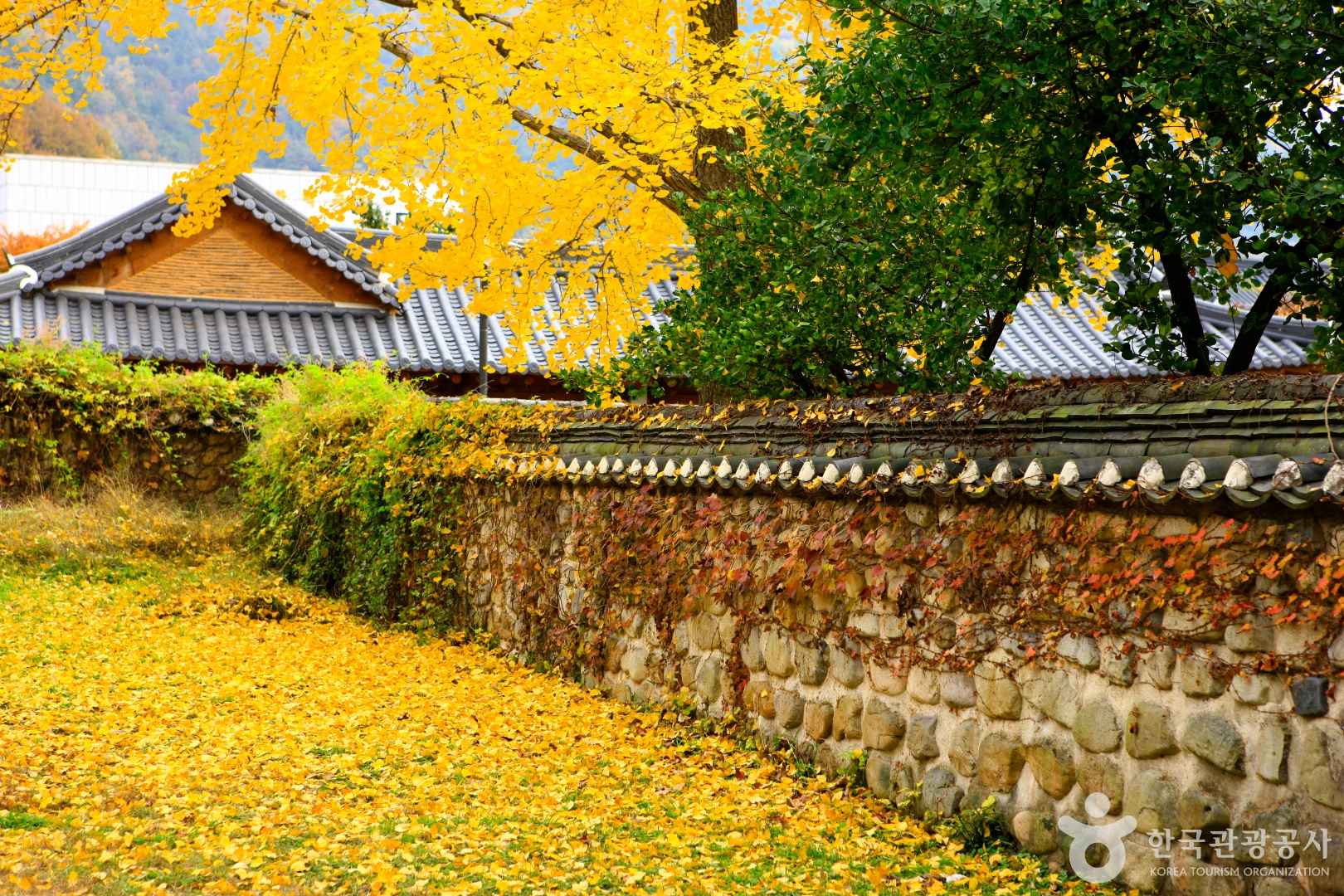 은행나무 단풍은 보통 10월 말에서 11월 초 사이가 절정입니다. 노란 은행잎과 고택이 어우러져 최고의 가을 풍경을 보여줘요.
