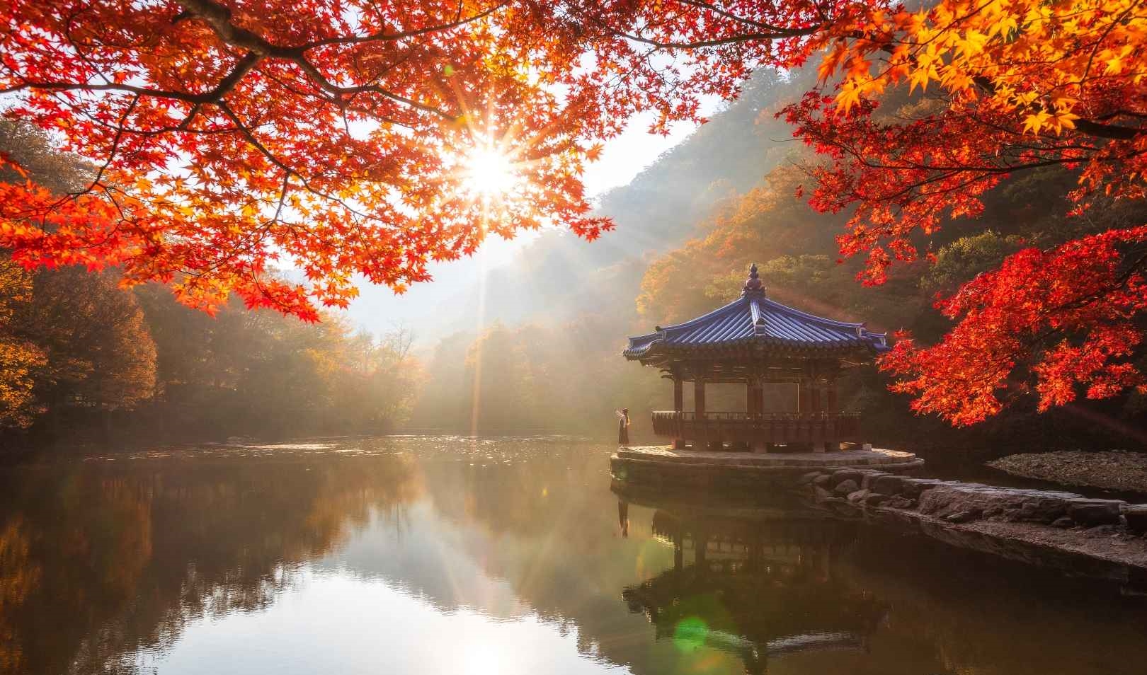 가장 추천하는 시기는 가을(10~11월)이에요. 단풍과 연못의 반영이 어우러져 수채화 같은 풍경을 보여줍니다.