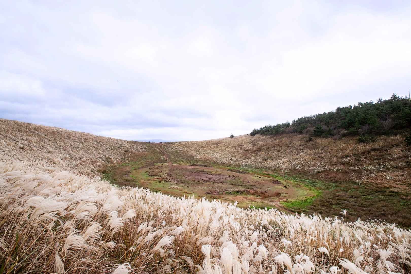 마른 분화구 안까지 직접 걸어 들어갈 수 있다는 점이 금오름만의 매력이에요!