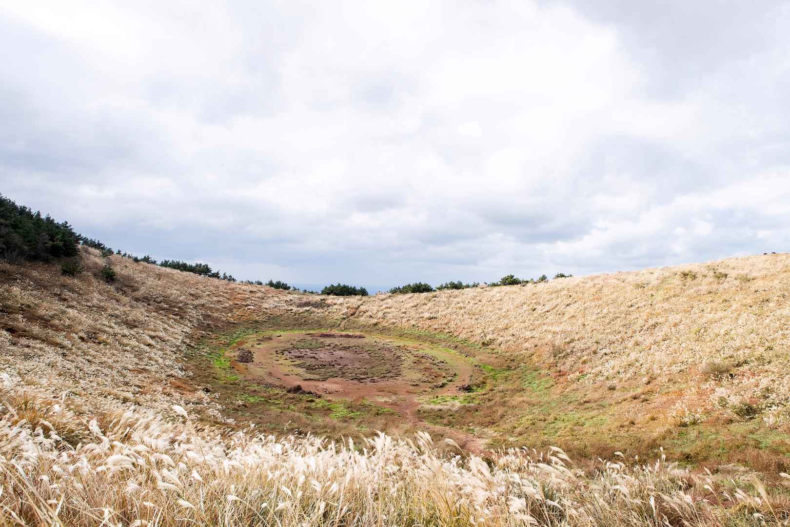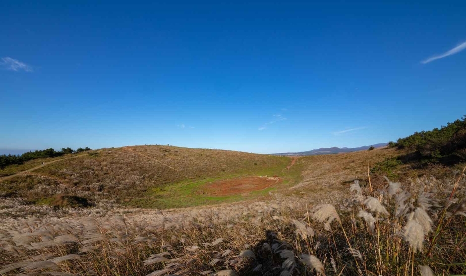 마른 분화구 안까지 직접 걸어 들어갈 수 있다는 점이 금오름만의 매력이에요!