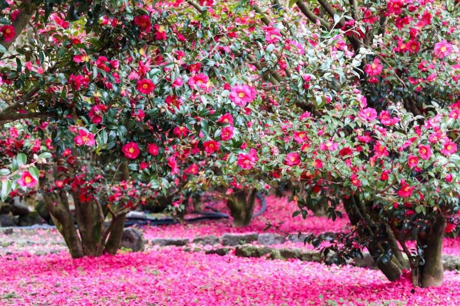 1월~2월은 동백의 절정 시즌! 여행 일정을 이 시기에 맞추면 동백의 진한 아름다움을 놓치지 않을 수 있어요.