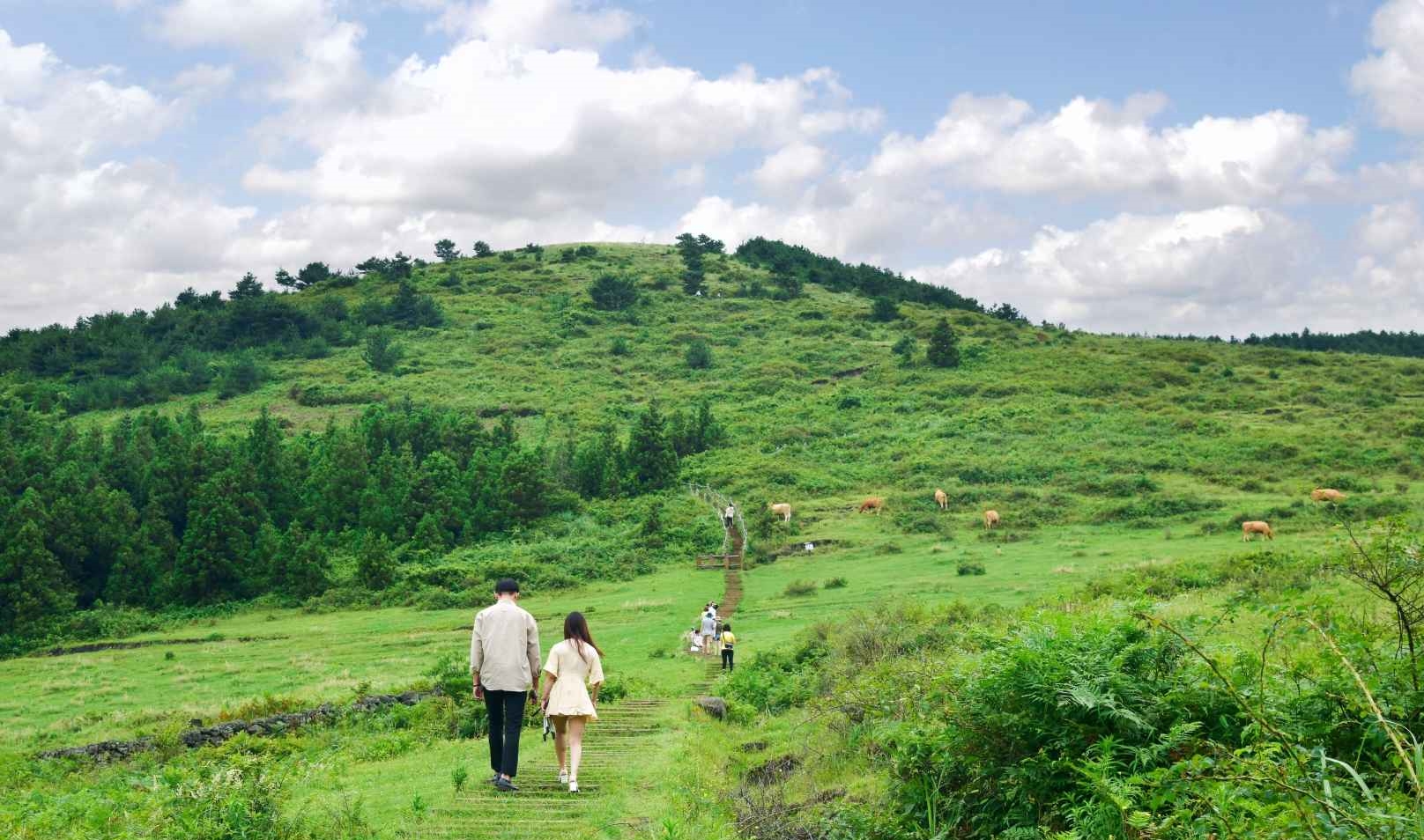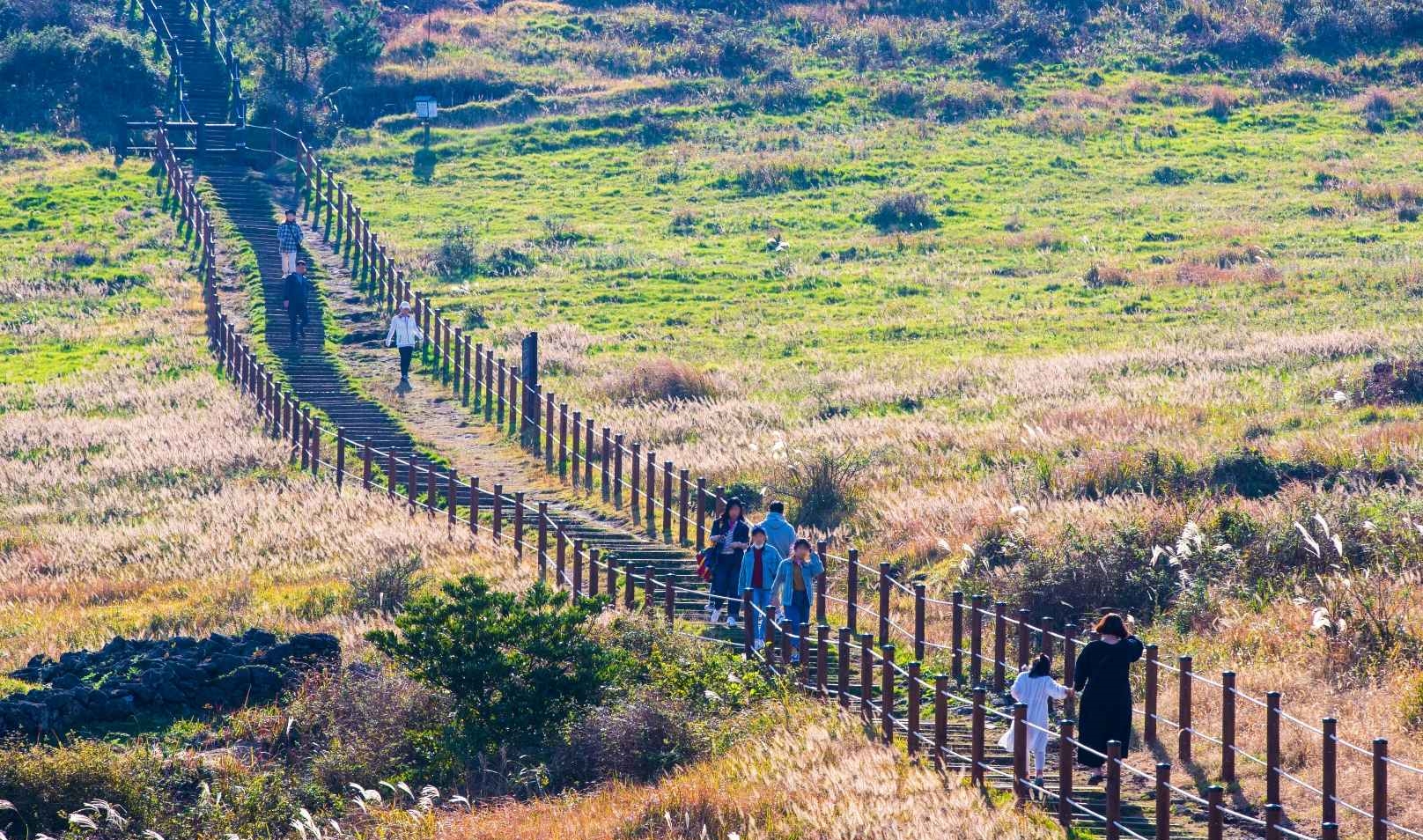 오름 입구에서 정상까지는 평균 도보 30분 정도 소요되며, 왕복 기준 약 1시간 정도 예상하시면 됩니다.