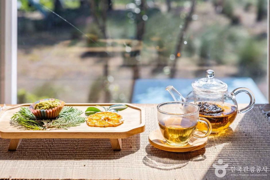 티하우스 이용 시 제공되는 차와 다식, 그리고 기프트 티는 입장객 전원 무료! 전망을 보며 따뜻한 차 한 모금 즐겨보세요. 이름처럼 정말 ‘쉼’을 선물받은 기분이 든답니다. 🌿☕