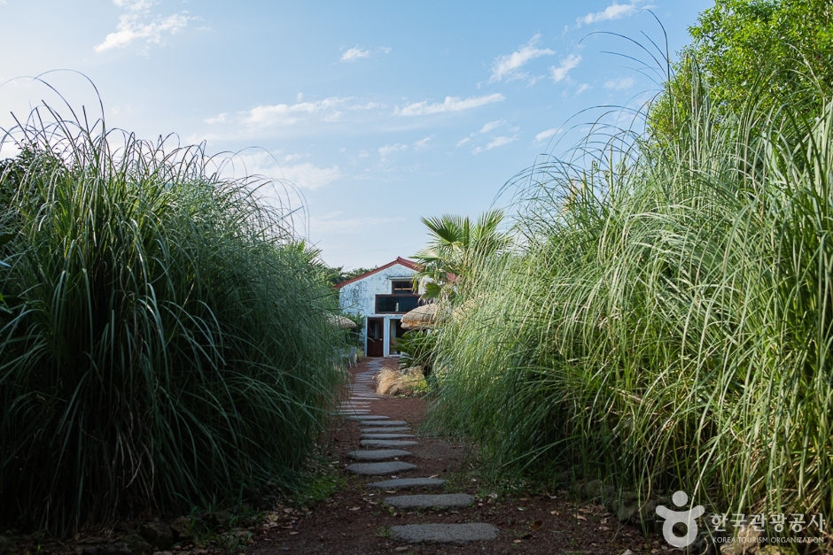 미깡창고는 원래 감귤 창고였던 건물을 개조해 만들어진 카페예요. 덕분에 외관부터 빈티지한 감성이 물씬 풍기며, 입구로 들어오는 길에는 억새가 가득한 길이 펼쳐져 있어 제주 특유의 자연미를 만끽할 수 있습니다. 특히 야외 정원은 테이블이 놓여 있어 계절마다 변하는 풍경과 함께 여유로운 시간을 보낼 수 있답니다. 주차장은 가게 뒤편에 마련되어 있어 접근성도 좋아요.