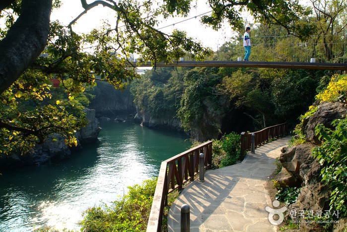 용연구름다리는 제주시 용담동의 용연계곡 위를 가로지르는 현수교 형태의 출렁다리입니다. 계곡과 바다, 숲, 불빛이 어우러지는 특별한 산책 장소로 알려져 있어요. 평소에도 물이 마르지 않는 용연의 깊은 물줄기와 기암절벽이 장관을 이루며, 다리 위에 서면 에메랄드빛 물과 붉은 정자, 우거진 숲이 어우러져 마치 그림 속 한 장면 같은 풍경이 펼쳐집니다 🌿 특히 야경이 아름답기로 유명한 곳이기 때문에, 제주시 도심에서 가볍게 힐링 산책을 즐기고 싶은 분들께 정말 추천드려요!
