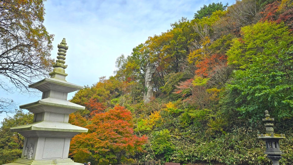 - 대웅전 뒤편 용바위 단풍길: 큰 바위 아래로 드리운 붉은 단풍잎이 사진 명소로 인기 있어요.