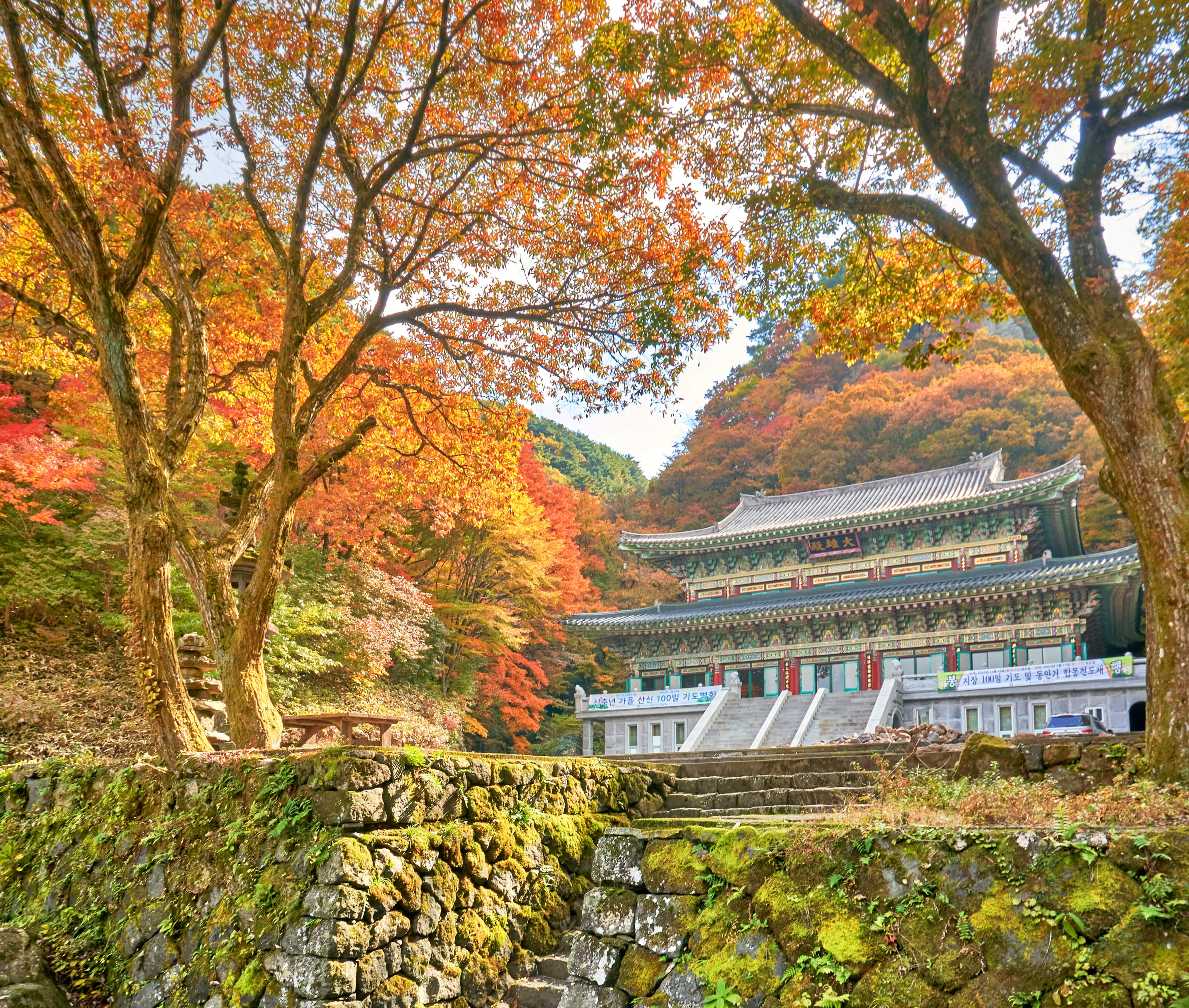 - 대웅전 뒤편 용바위 단풍길: 큰 바위 아래로 드리운 붉은 단풍잎이 사진 명소로 인기 있어요.