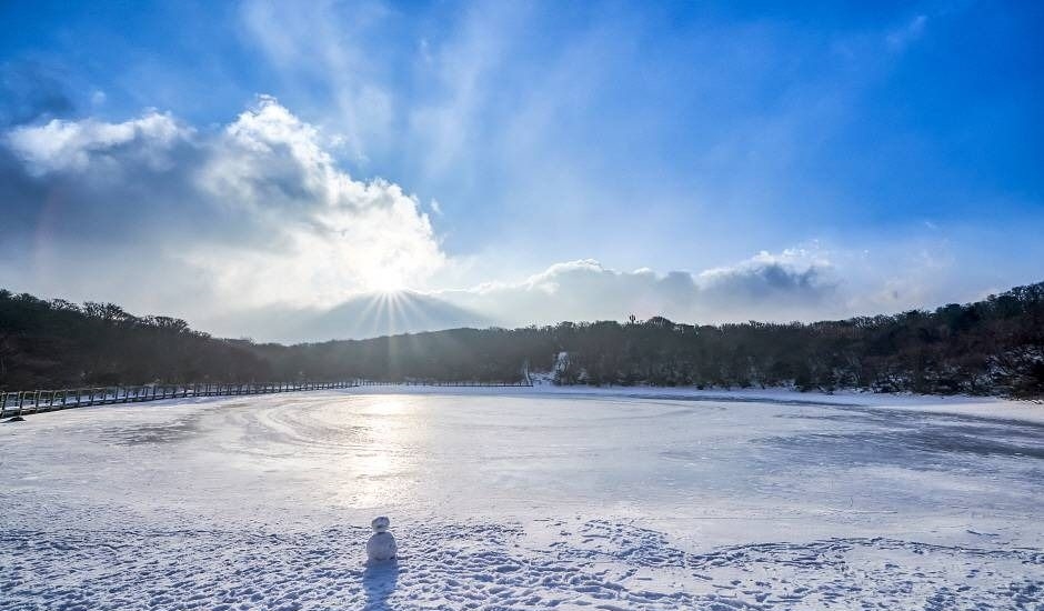 이른 오전의 운해나 맑은 날 오후의 반영이 가장 예쁩니다. 특히 눈이 덮인 새벽 풍경은 인생샷 포인트예요!