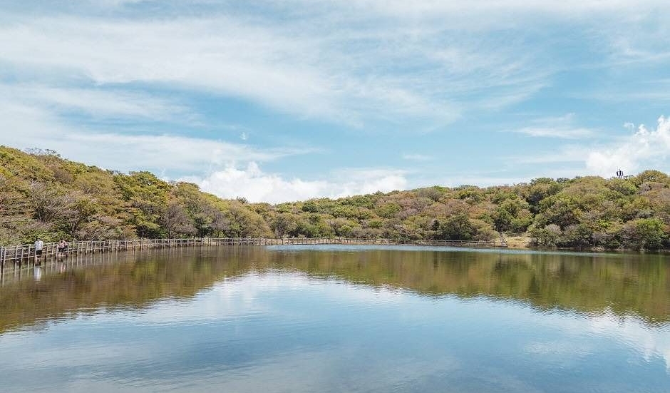 여기서 왕복 약 600m 정도의 짧은 우회로를 통해 오르면 이 신비로운 화구호가 눈앞에 펼쳐지죠. 정상까지 오를 필요 없이, 가볍게 즐기는 절경 코스로 인기랍니다!