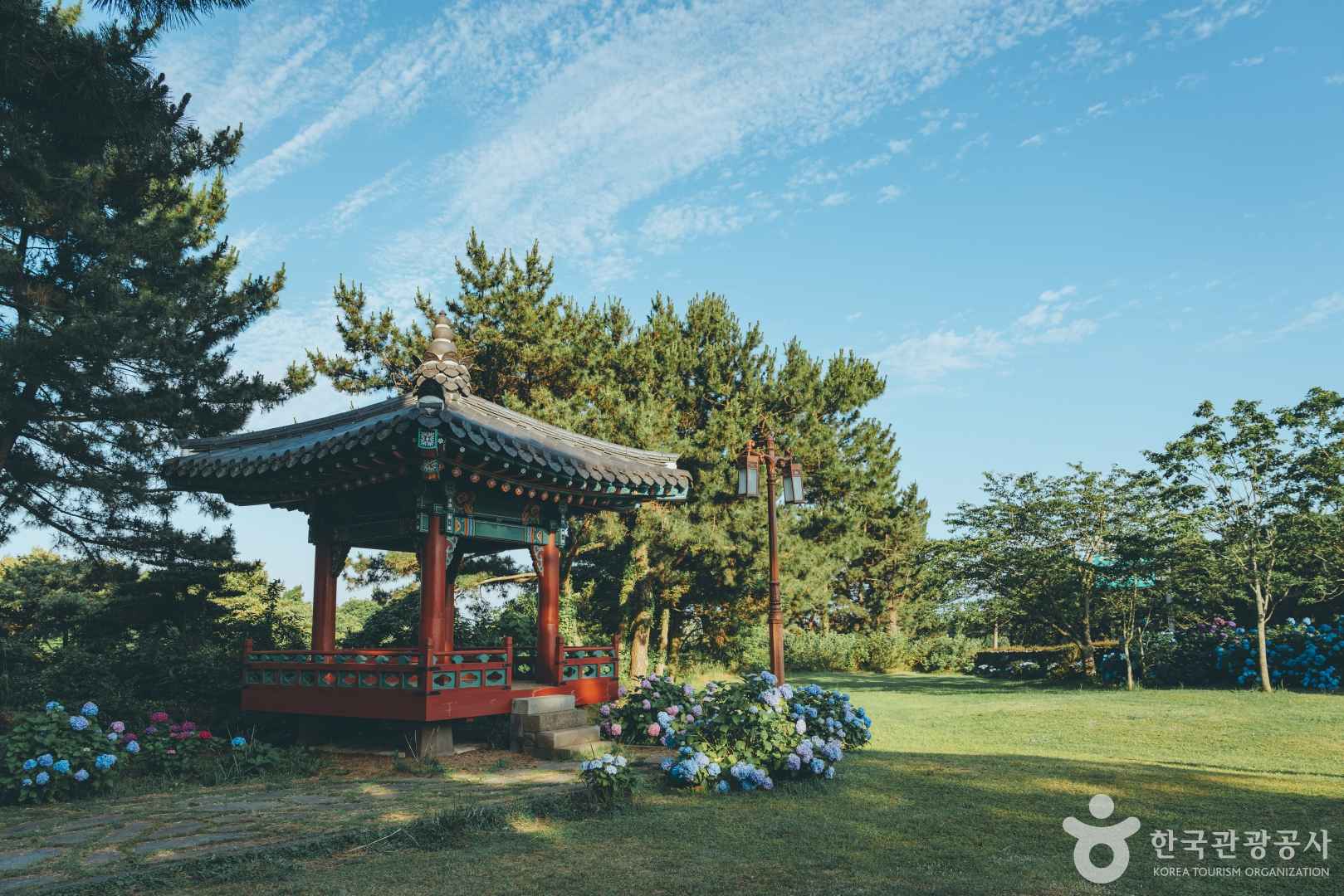 | 수국 산책길 | 여름에 만개하는 수국과 연꽃이 연못과 어우러진 산책로. |