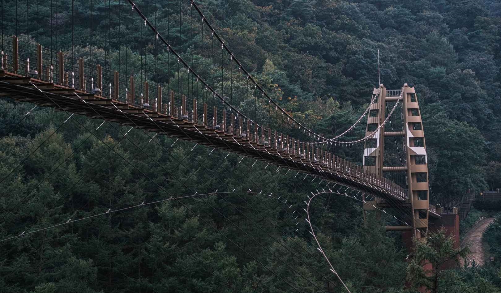 다리의 길이는 230m, 이 중 130m는 출렁거리는 구조이며 폭 2m, 높이 50m의 규모로 만들어져 있습니다. 이름 그대로 ‘명상’을 위한 다리로 조성되어, 걷는 동안 숲과 하늘, 바람 소리에 집중하며 마음을 비워볼 수 있어요.