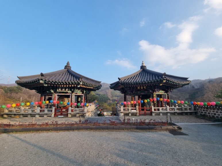 천왕문을 지나 경내로 들어서면 범종각과 법고각이 나란히 배치되어 고즈넉한 멋을 자아냅니다. 경내는 정갈하게 가꿔진 정원과 연못, 그리고 스님들이 손수 돌보는 자연으로 가득해요.